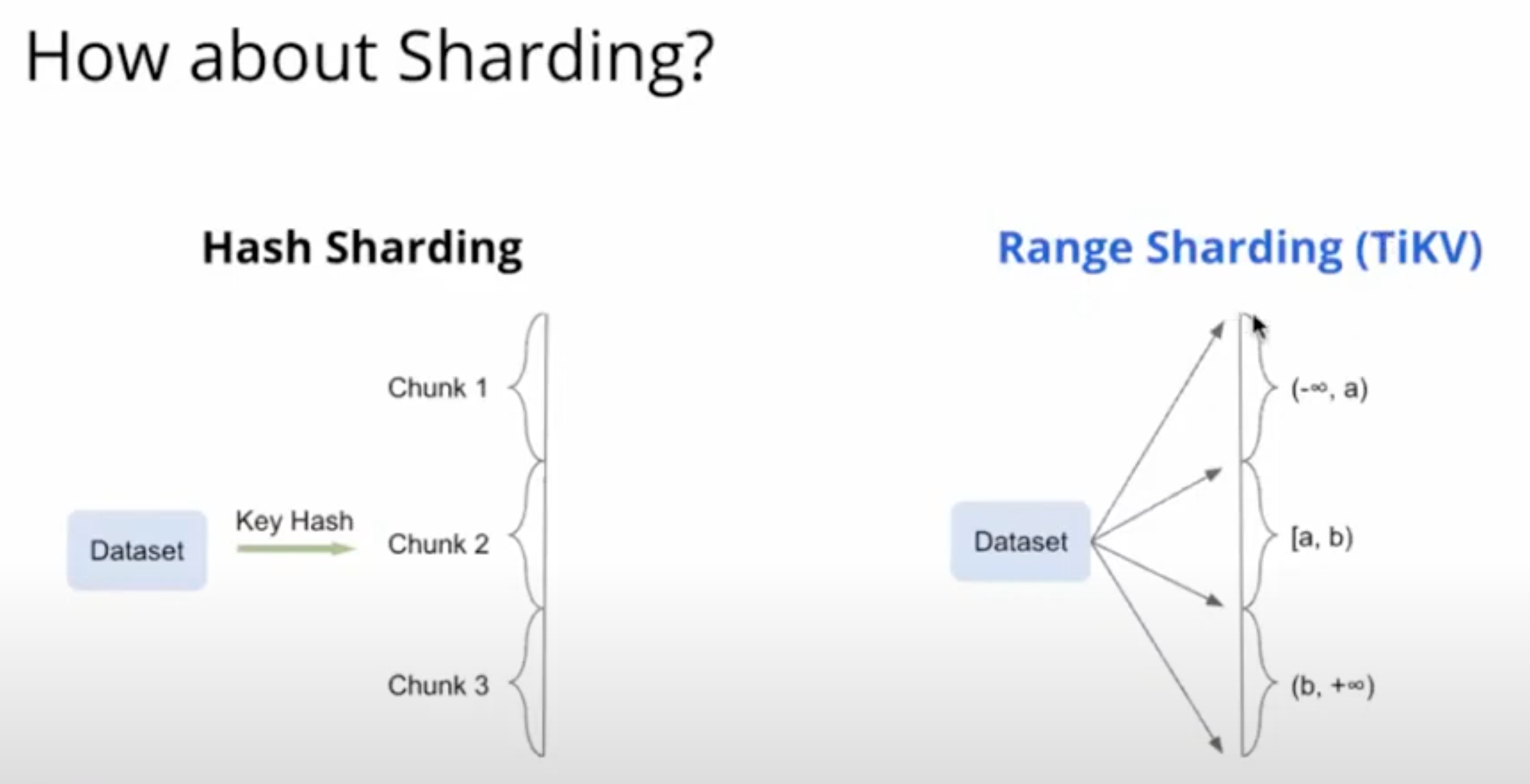 TiKV uses Range Sharding as opposed to Hash Sharding, which is used by other systems
